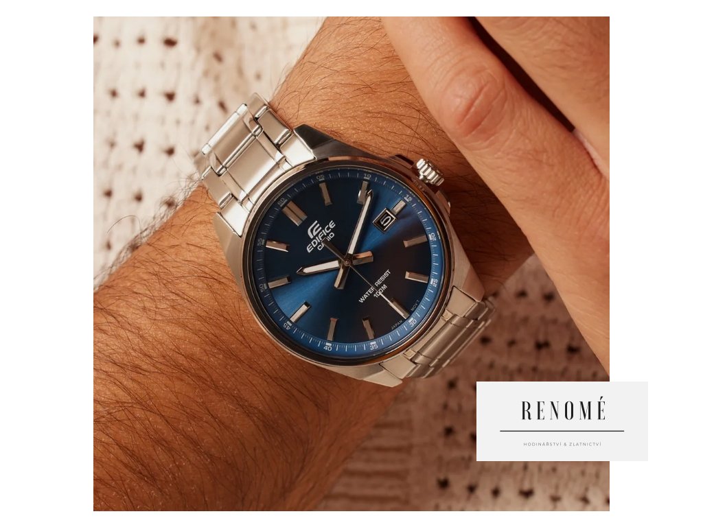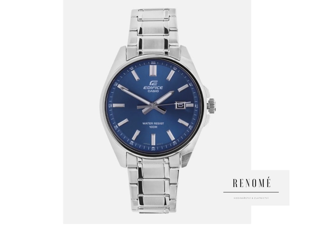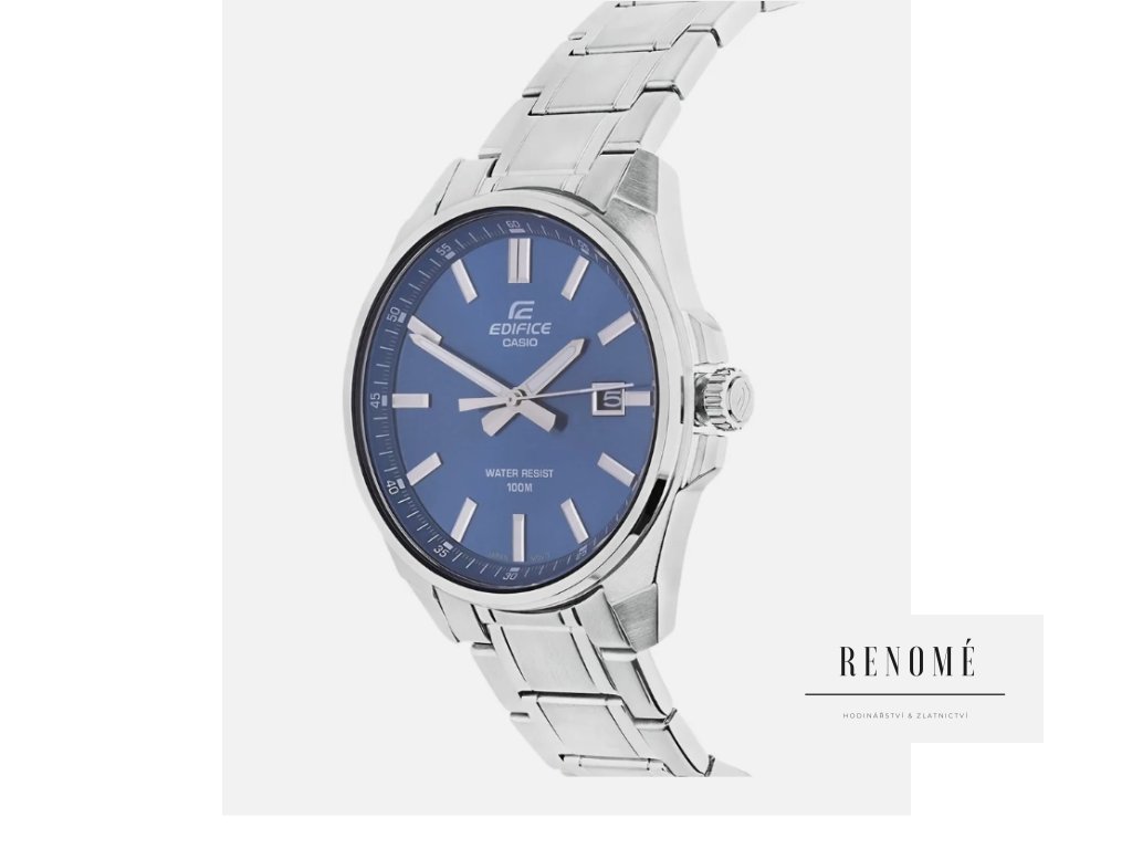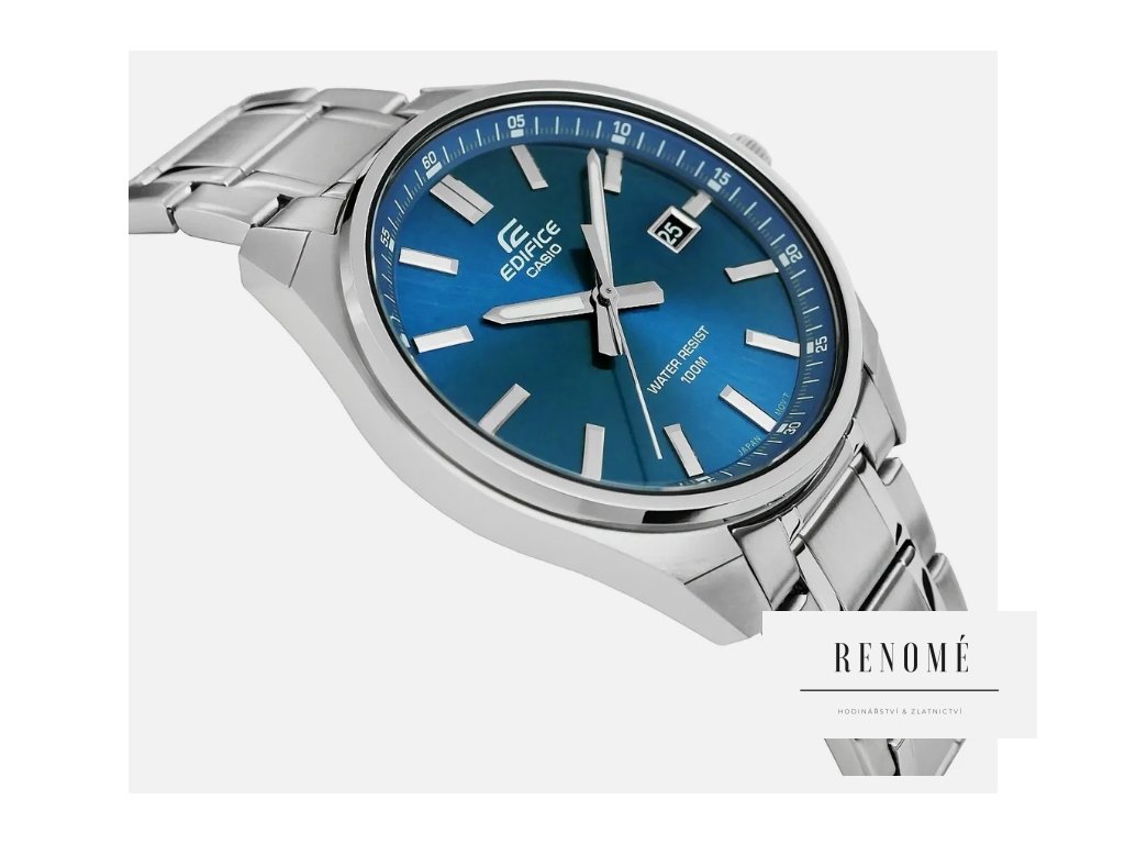 Hodinky Casio Edifice EFV-150D-2AVUEF s klasickým nadčasovým vzhledem mají modrý číselník s efektem slunečního brusu a plastickými indexy na hodinových pozicích. Chráněn je minerálním sklíčkem. Pouzdro hodinek je vyrobeno z ušlechtilé oceli a vhodně doplněno ocelovým náramkem zakončeným překlápěcí sponou s bočním otevíráním. Hodinky jsou vybavené ukazatelem data na pozici 3. hodiny. Ručičky jsou opatřeny luminiscenční vrstvou, zajišťující lepší čitelnost při zhoršených světelných podmínkách.