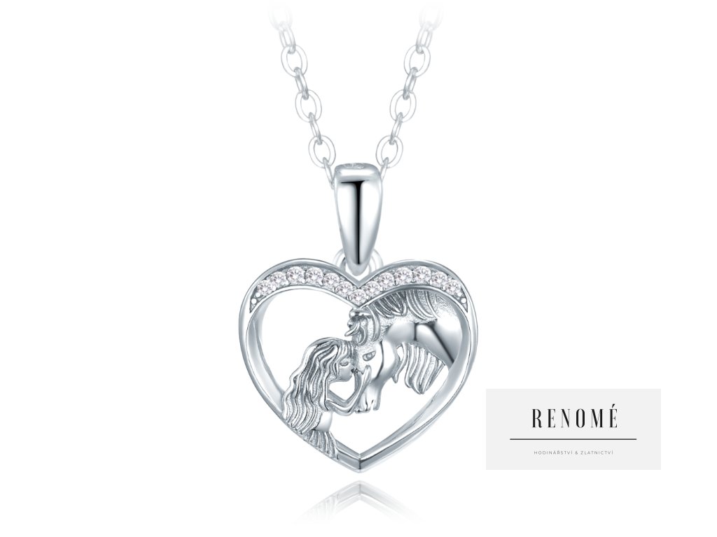Stříbrný náhrdelník dívka s koněm a bílými zirkony